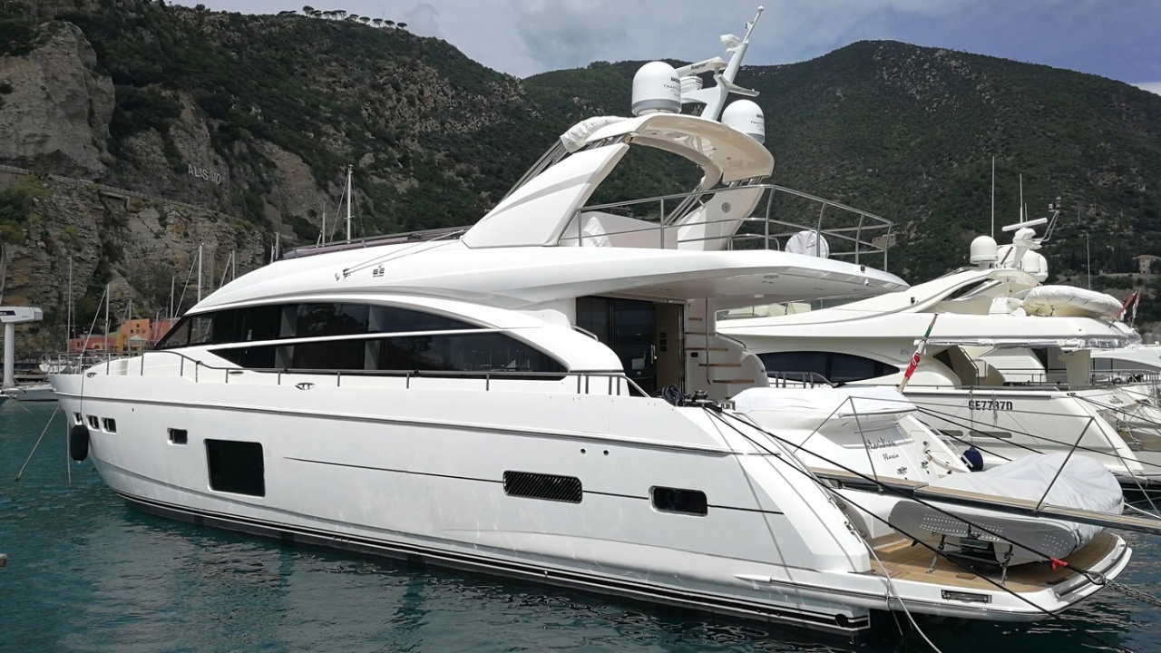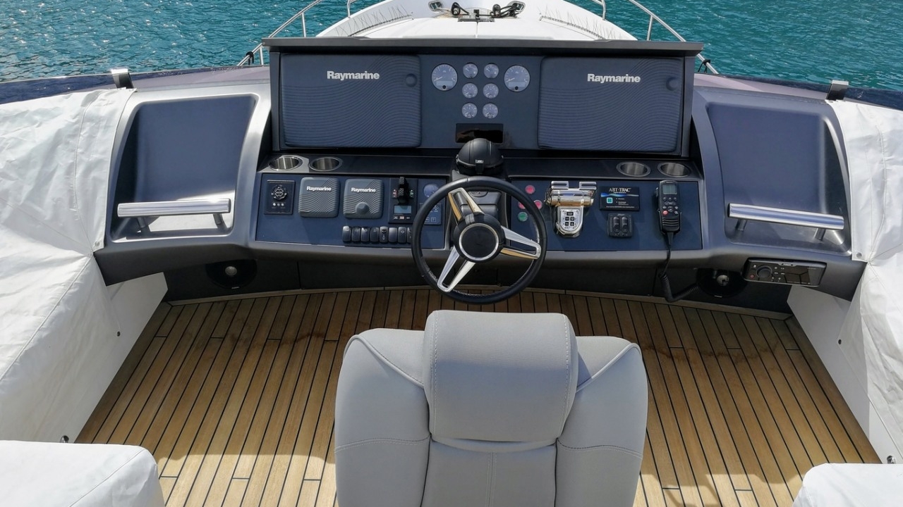 The Princess 82 Motor Yacht is simultaneously graceful and exhilarating in the same breath. Her extended window line affords you exceptional visibility from the main deck. The expansive flybridge cossets guests with soft sunpads, a teak dining table, intimate seating and a dedicated wetbar. Light and space are in abundance, with broad windows the length of the main deck saloon. And when the moment arises, her deep-V hull is poised to thrust you across the waves up to an impressive 34 knots.