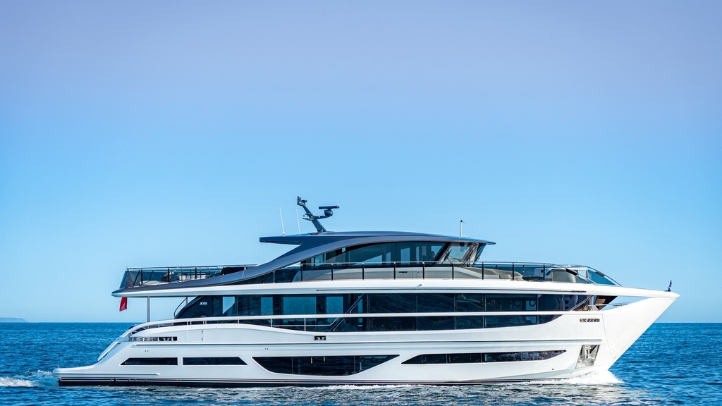 – Transom garage (for wetbike stowage) is standard. Crew accommodation in two cabins for 3-4 with 2 crew bathroom and mess area.