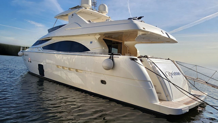 Ferretti 830, measuring 25.3 meters, is the second super-yacht in the FERRETTI YACHTS fleet and features a pioneering hull design, highlighted by the master cabin's innovative large windows that enhance the panoramic view. Emphasizing the "Being Ferretti" philosophy, the yacht combines a passion for the sea with cutting-edge technology, showcased through the NAVIOP monitoring system and the gyro stabilizers Mitsubishi.
