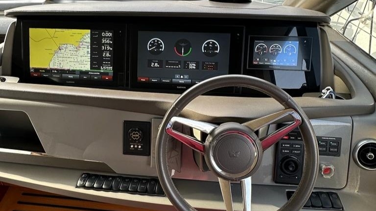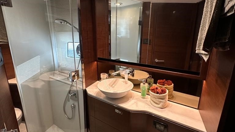 Princess F55 yacht is meticulously maintained and comes with VAT paid status. Boasting spacious accommodations, this yacht features 3 cabins with 2 en-suite bathrooms. The yacht also offers dedicated quarters for a crew of 2.