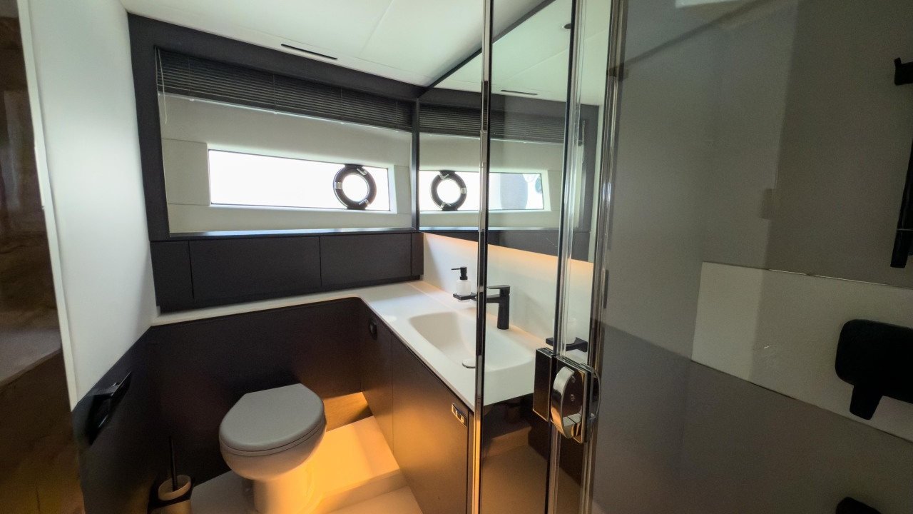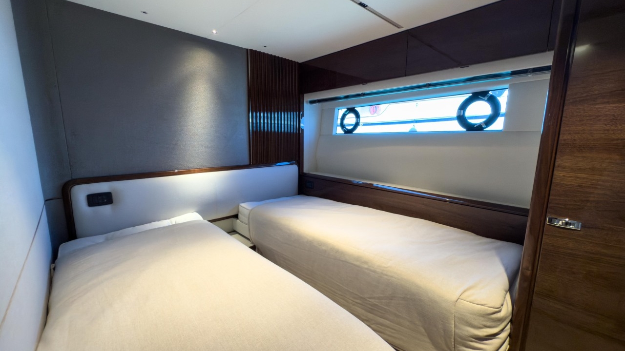 Below deck, she offers four beautifully appointed en-suite cabins for up to eight guests, including a full-beam master suite and a forward VIP, plus well-equipped crew quarters for two.