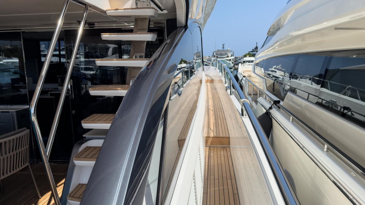 We are delighted to offer this exclusive 2025 Princess S80, presented in new condition and available immediately on the French Riviera. This exceptional sportsfly combines the generous space of a flybridge with the sleek profile and performance of a sports yacht, offering a rare opportunity to purchase a brand-new model at a brokerage price – around £700,000 less than an identical new build.