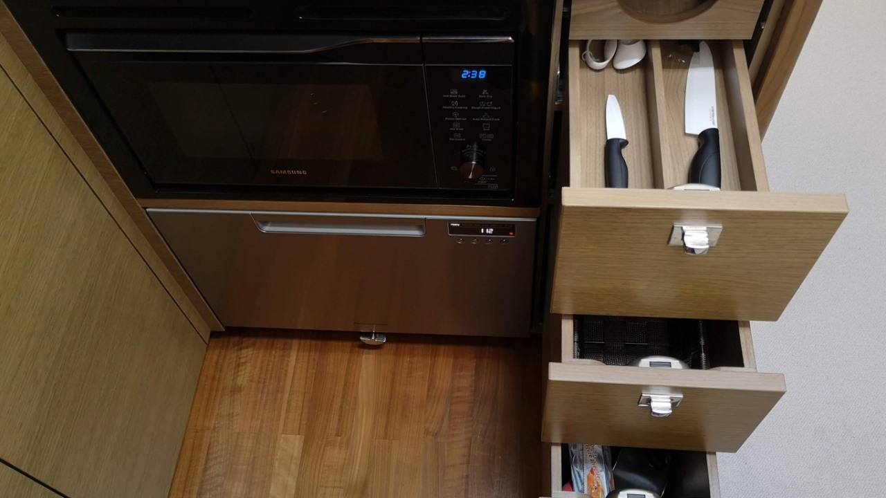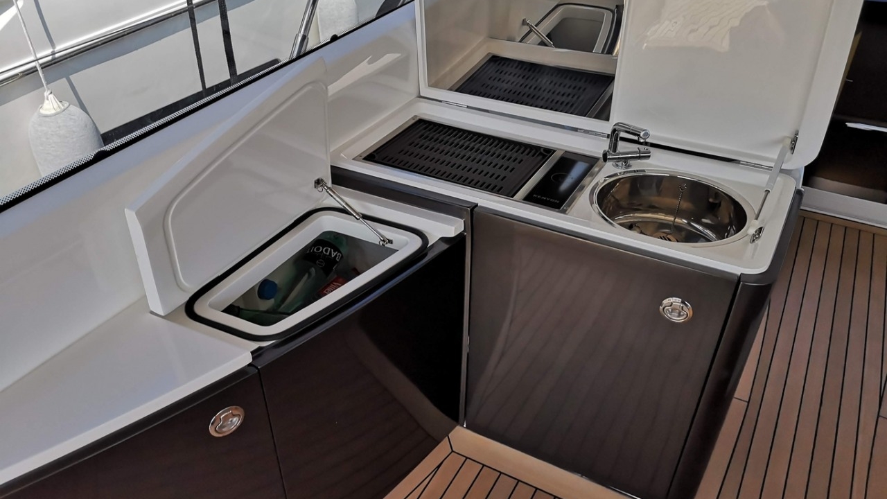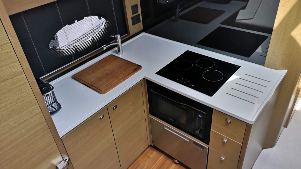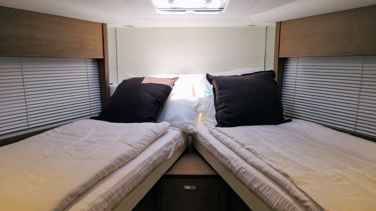 – Lower dinette table to convert to double berth with telescopic table legs and infill cushion