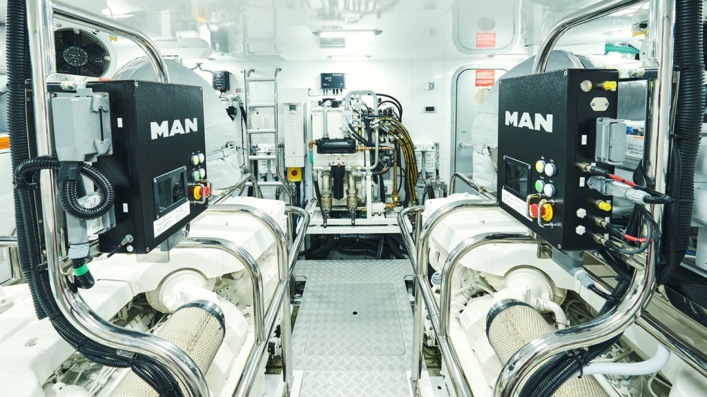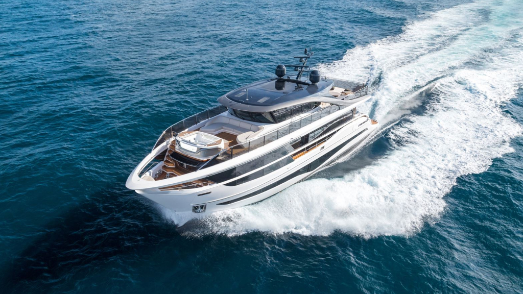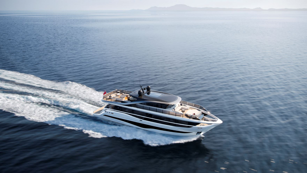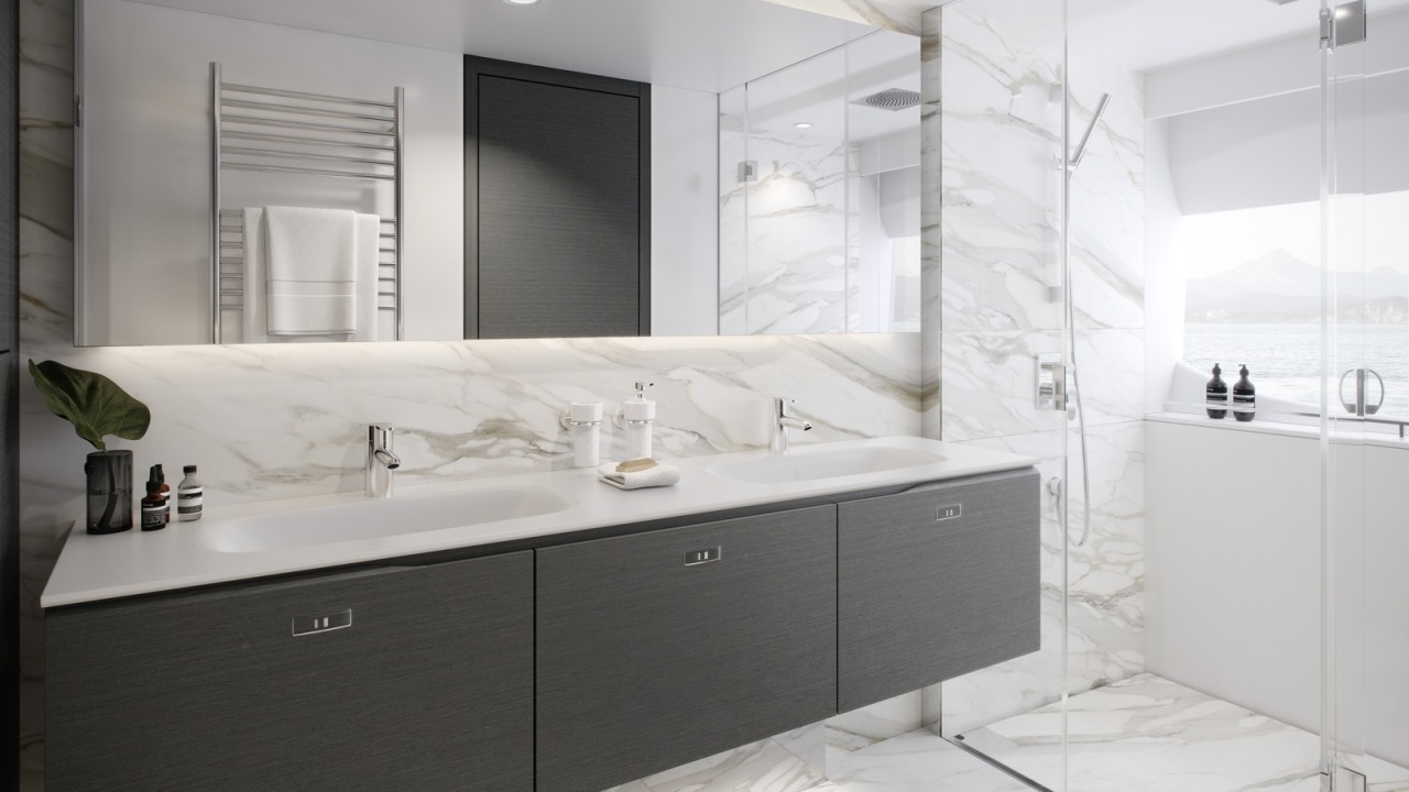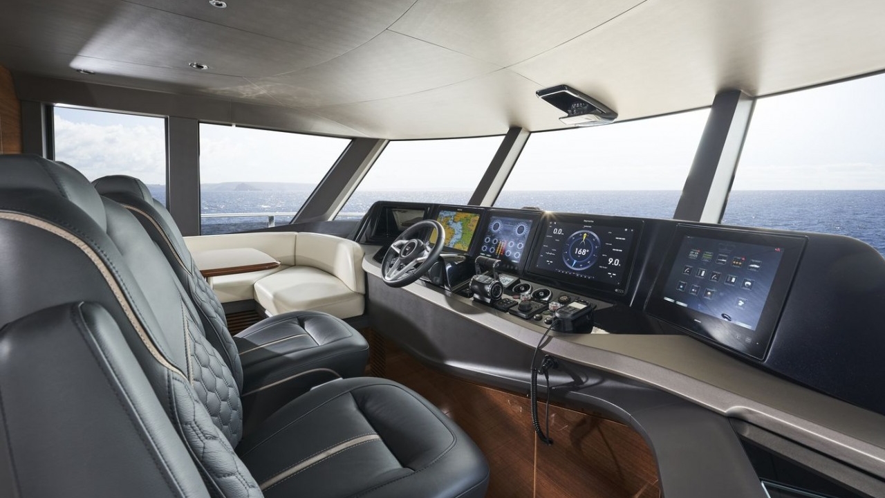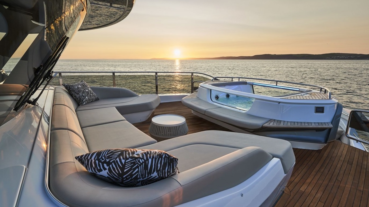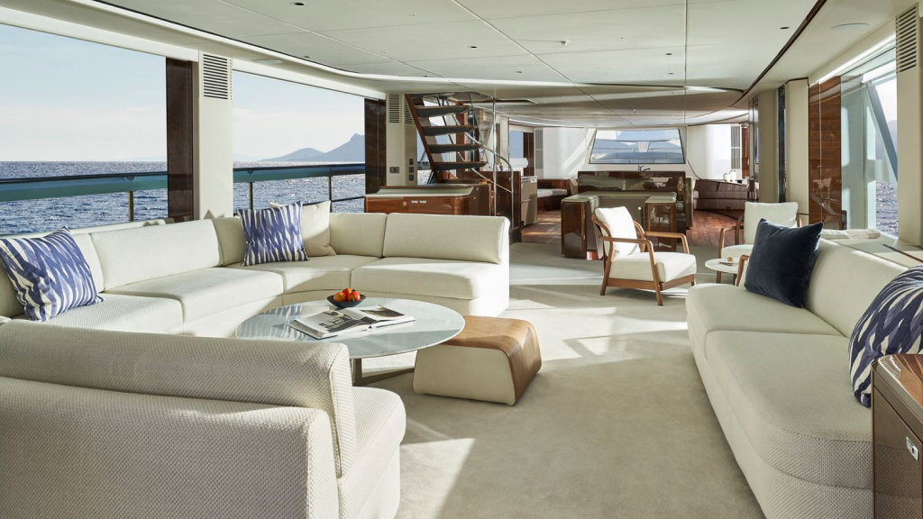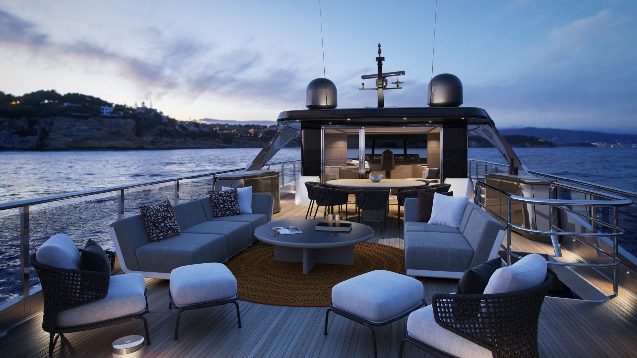 Par la beauté de ses surfaces sculptées et de ses lignes fluides, le X95 définit un nouveau vocabulaire du design pour la superbe X Class. Son flybridge et son pont principal ouvrent sur presque toute la longueur du yacht de grands espaces modulaires : vous adaptez chaque croisière aux préférences de vos invités à bord. Grâce à la capacité généreuse de ses réservoirs de carburant (13 400 litres), le X95 est équipé pour vous emporter dans des traversées lointaines. À l’entrée sur le pont principal, le spacieux salon digne d’un mé-ga-yacht s’étire jusqu’à l’horizon, visible par la fenêtre avant. Em-pruntez l’escalier intérieur menant au pont supérieur où une expérience unique vous attend : le salon panoramique Sky Lounge, entièrement protégé et climatisé. À la place d’honneur au pont in-férieur, la cabine du propriétaire, sur toute la largeur du yacht, est dotée de sa salle de bains particulière. Une cabine avant avec penderie-dressing et salle de bains attenante vient la compléter. Des cabines invités bâbord et tribord peuvent être aménagées en lits jumeaux ou grand lit double et les spacieux quartiers de l’équipage ajoutent à la générosité des hébergements à bord.