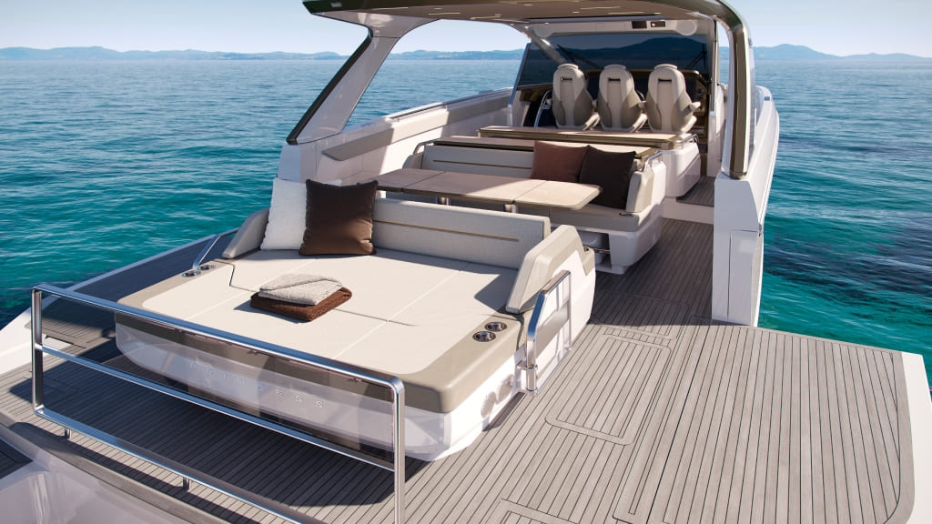 The interior reflects Princess’s signature attention to detail, featuring premium materials, teak finishes, and soft furnishings that evoke comfort and craftsmanship. Below deck, a beautifully appointed salon with a dining area, a generous cabin, and a modern bathroom make the C48 Open ideal for both day cruising and short getaways.