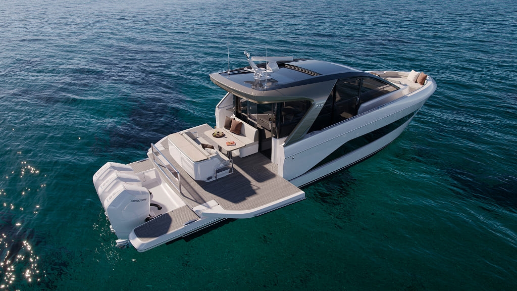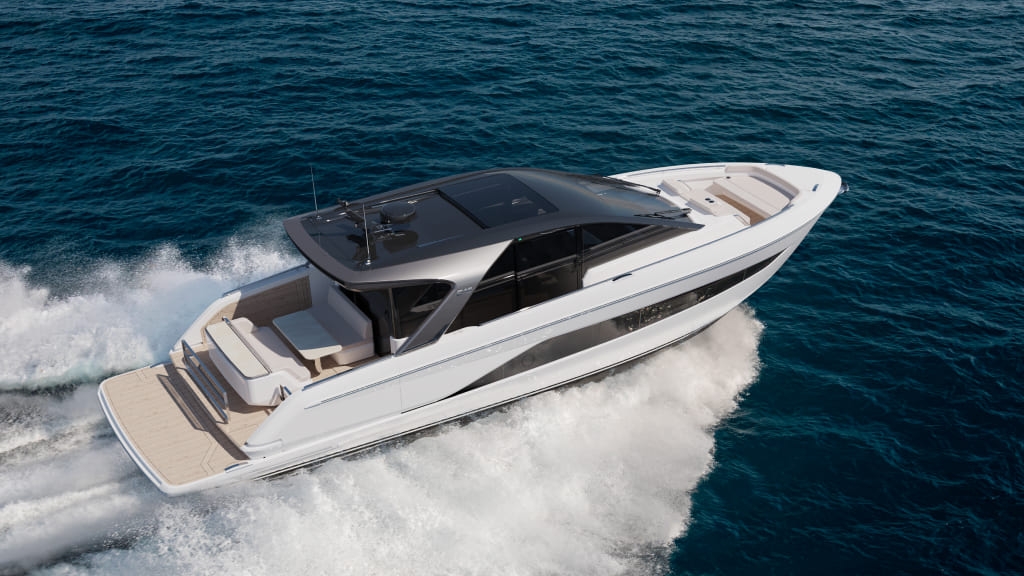 Below deck, the C48 Deck Saloon offers two well-appointed cabins, a spacious bathroom, and a central lobby with ample storage — perfectly designed for both short escapes and extended cruising. The Michael Peters SVVT hull delivers outstanding stability, smooth performance, and efficiency, ensuring the C48 Deck Saloon moves with confidence, agility, and elegance across the water.