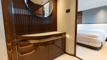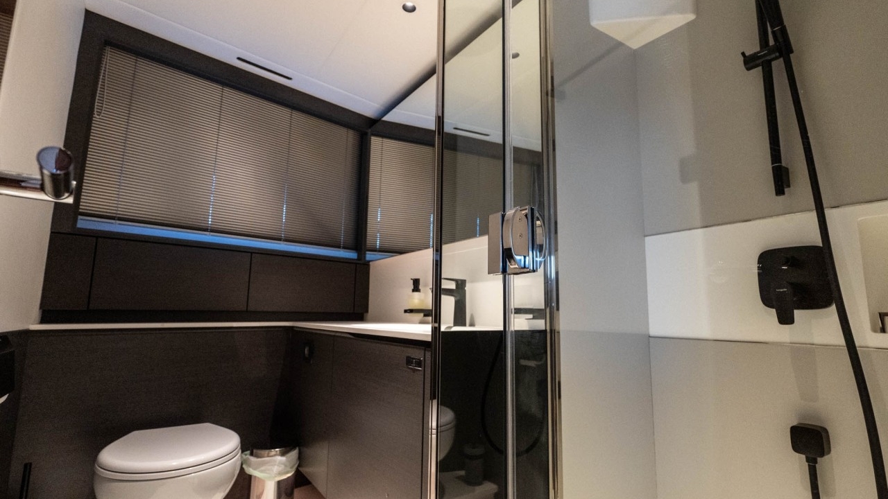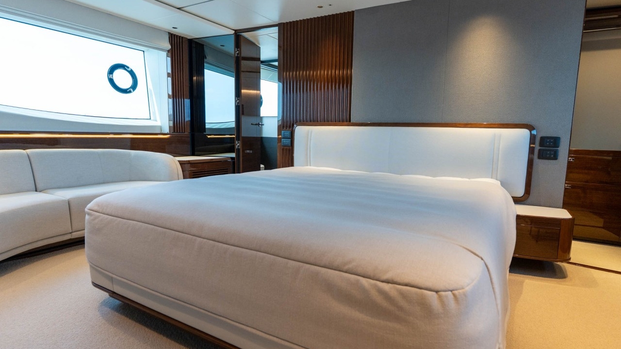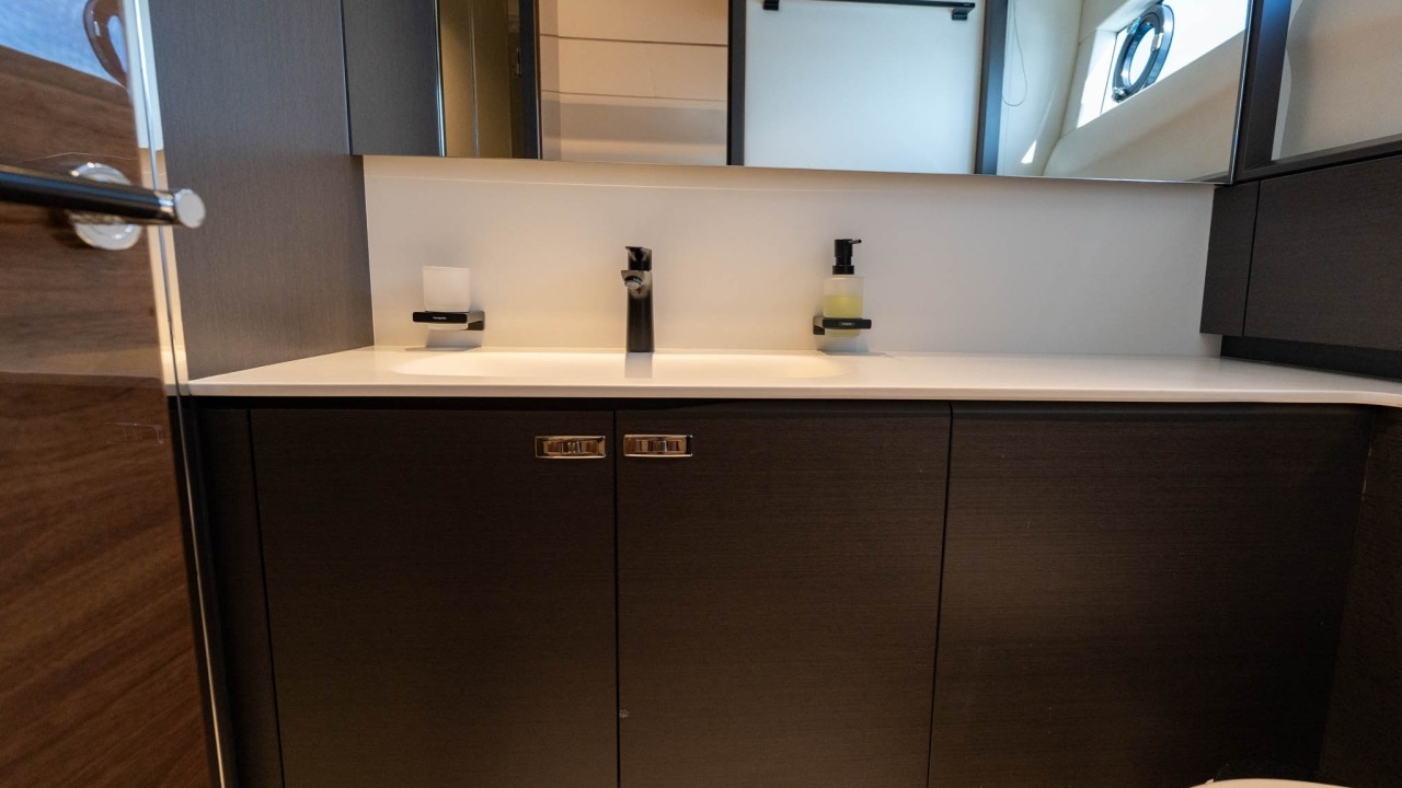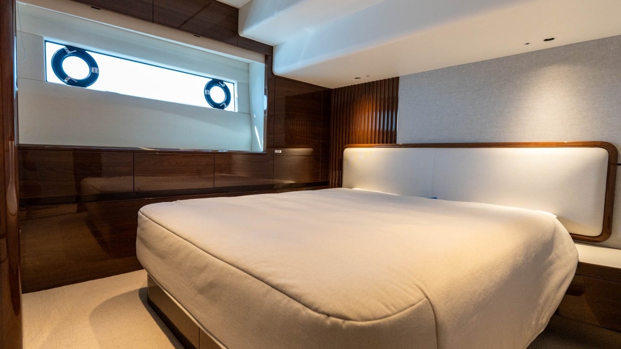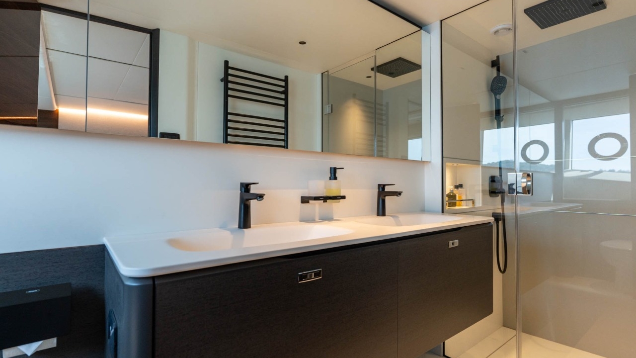 Below deck, she offers four beautifully appointed en-suite cabins for up to eight guests, including a full-beam master suite and a forward VIP, plus well-equipped crew quarters for two.