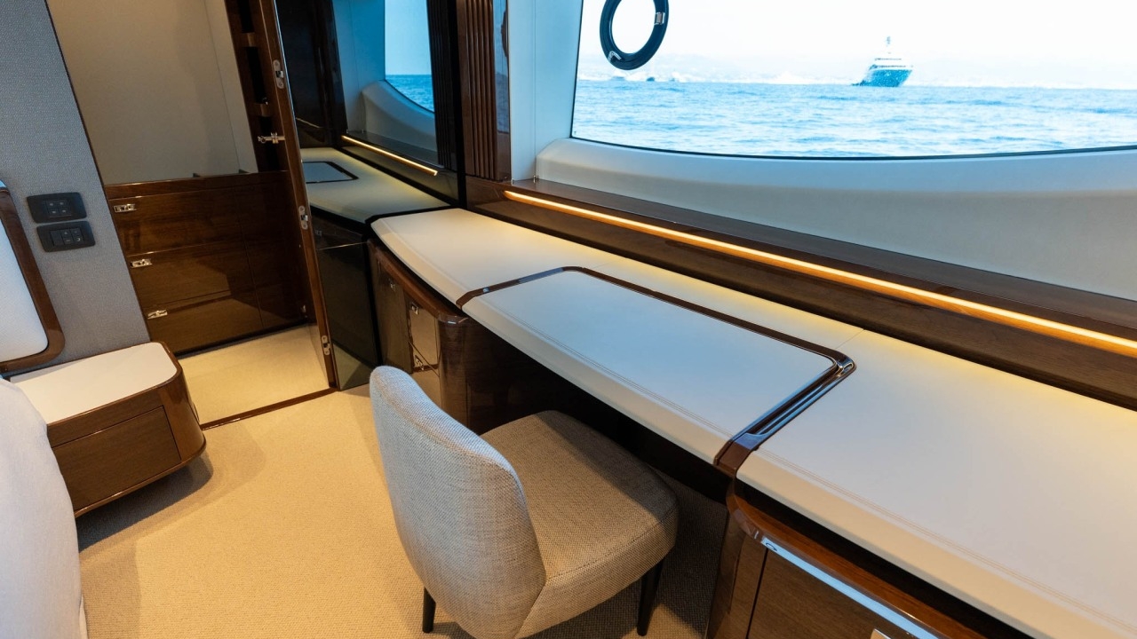 We are delighted to offer this exclusive 2025 Princess S80, presented in new condition and available immediately on the French Riviera. This exceptional sportsfly combines the generous space of a flybridge with the sleek profile and performance of a sports yacht, offering a rare opportunity to purchase a brand-new model at a brokerage price – around £700,000 less than an identical new build.