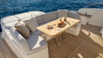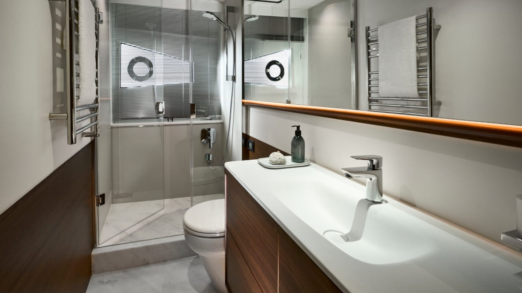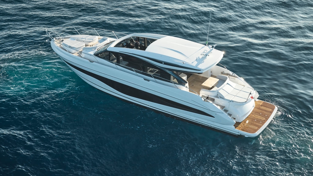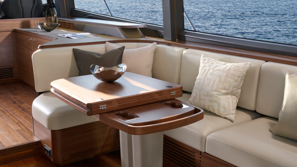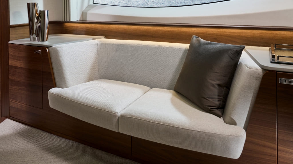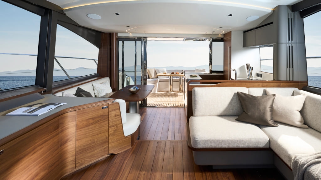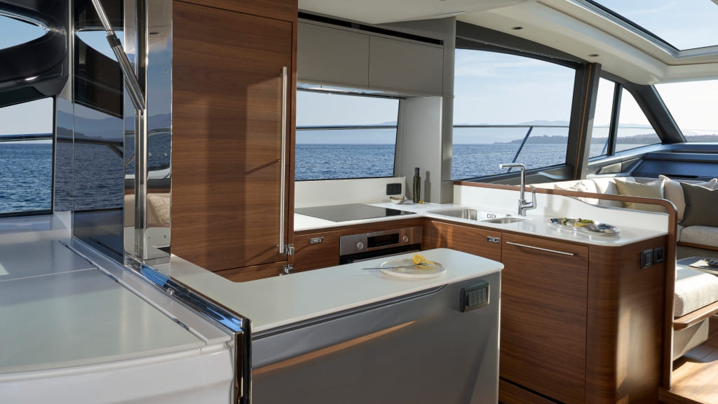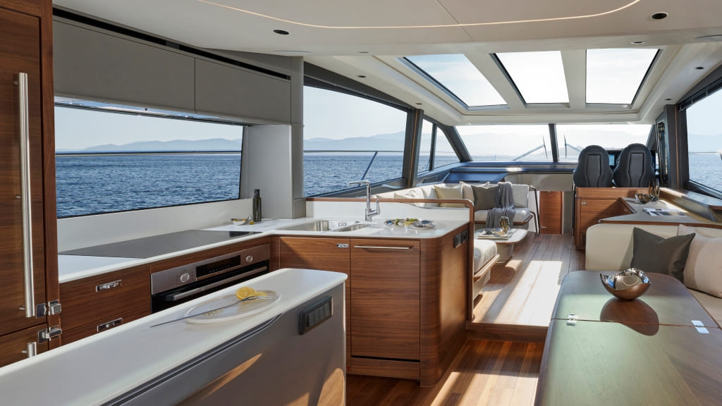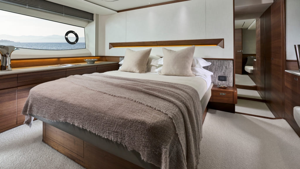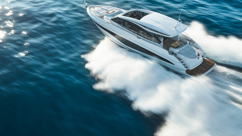 Potente e progressiva, l’emozionante, nuovissima V65 stabilisce un nuovo standard. Il suo scafo a V profondo, di progettazione Olesinski, è ottimizzato per una portata superiore e meno resistenza aerodinamica, inferiore pianificazione della velocità e maggiore efficienza. Nel pieno del divertimento, la sua spaziosa cabina di guida offre la possibilità di rilassarsi con un solarium e una sala da pranzo ben attrezzata che conduce alla cucina a poppa equipaggiata in tutto. Con cinque lamine per tettoia tra cui scegliere e motori in grado di raggiungere i 38 nodi, la nuovissima V65 è tanto vivace quanto audace. Il suo salone flessibile può essere climatizzato oppure lasciato esposto agli elementi grazie alle triple porte scorrevoli a poppa e tettuccio prendisole retrattile. Sottocoperta, otto ospiti possono godersi le quattro cabine ben arredate e inondate dalla luce naturale grazie alle eleganti vetrate, con in più un’ultima cabina singola a poppa destinata ad altri ospiti occasionali o all’equipaggio.
