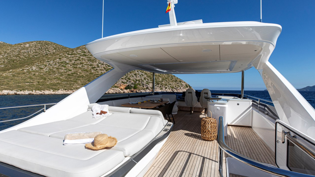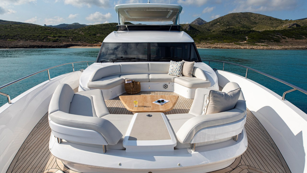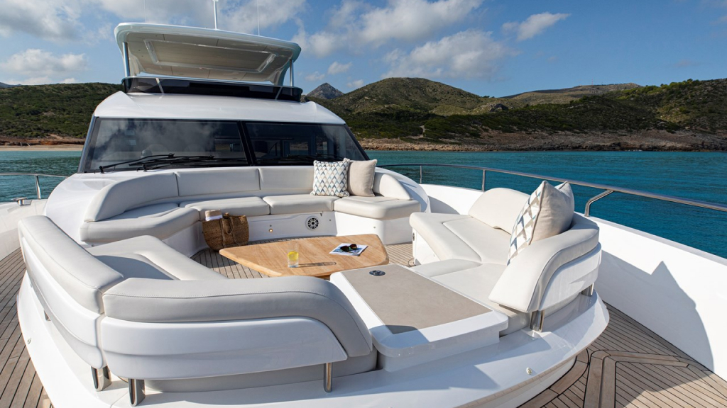 The foredeck has been designed to offer a secluded escape to while-away an afternoon or an elegant entertaining space to sip cocktails with guests. A conversationalist seating area can easily accommodate 10 people, with adaptable forward and aft facing U-shaped seating which can convert to offer a spacious sunpad.