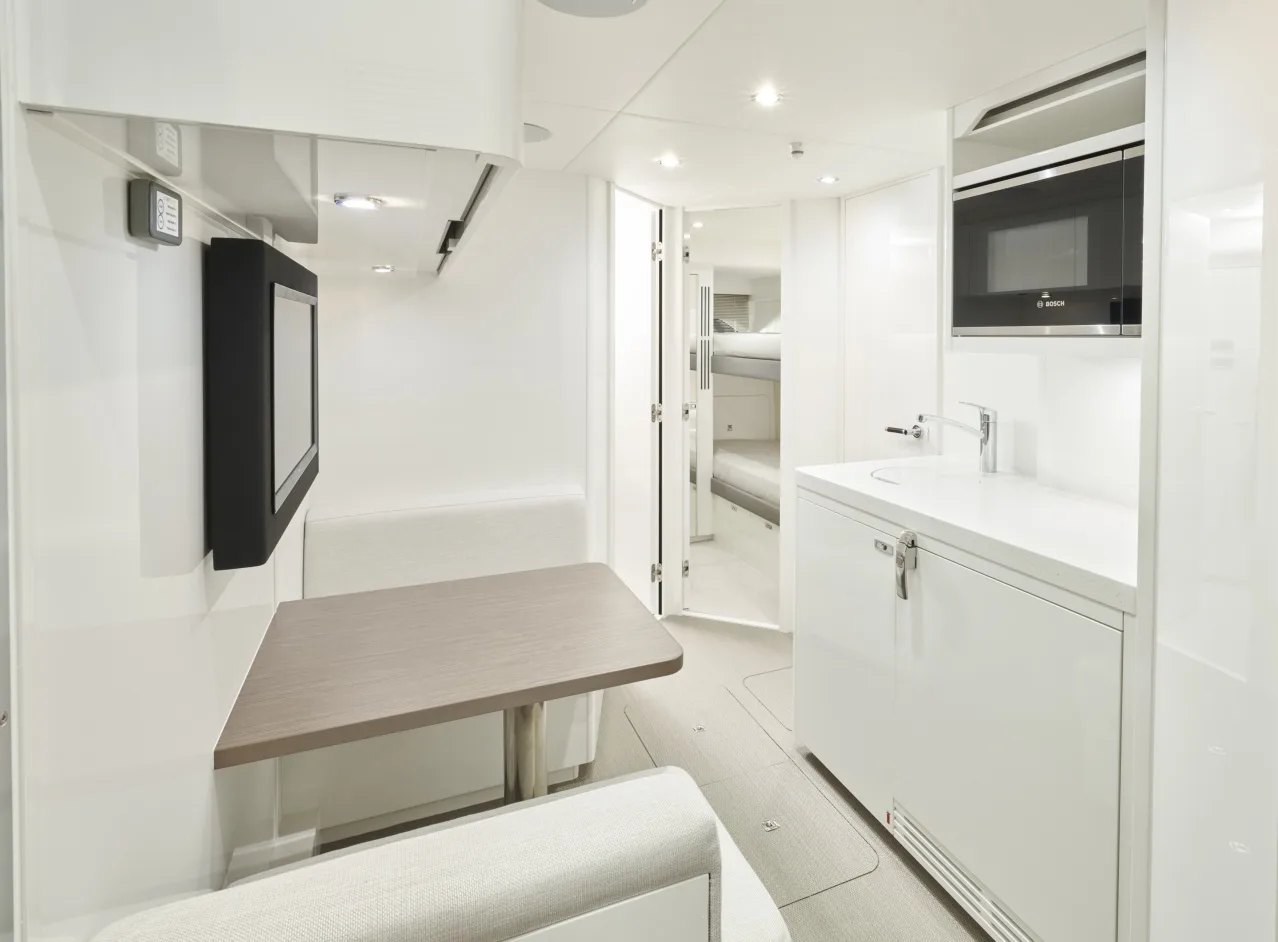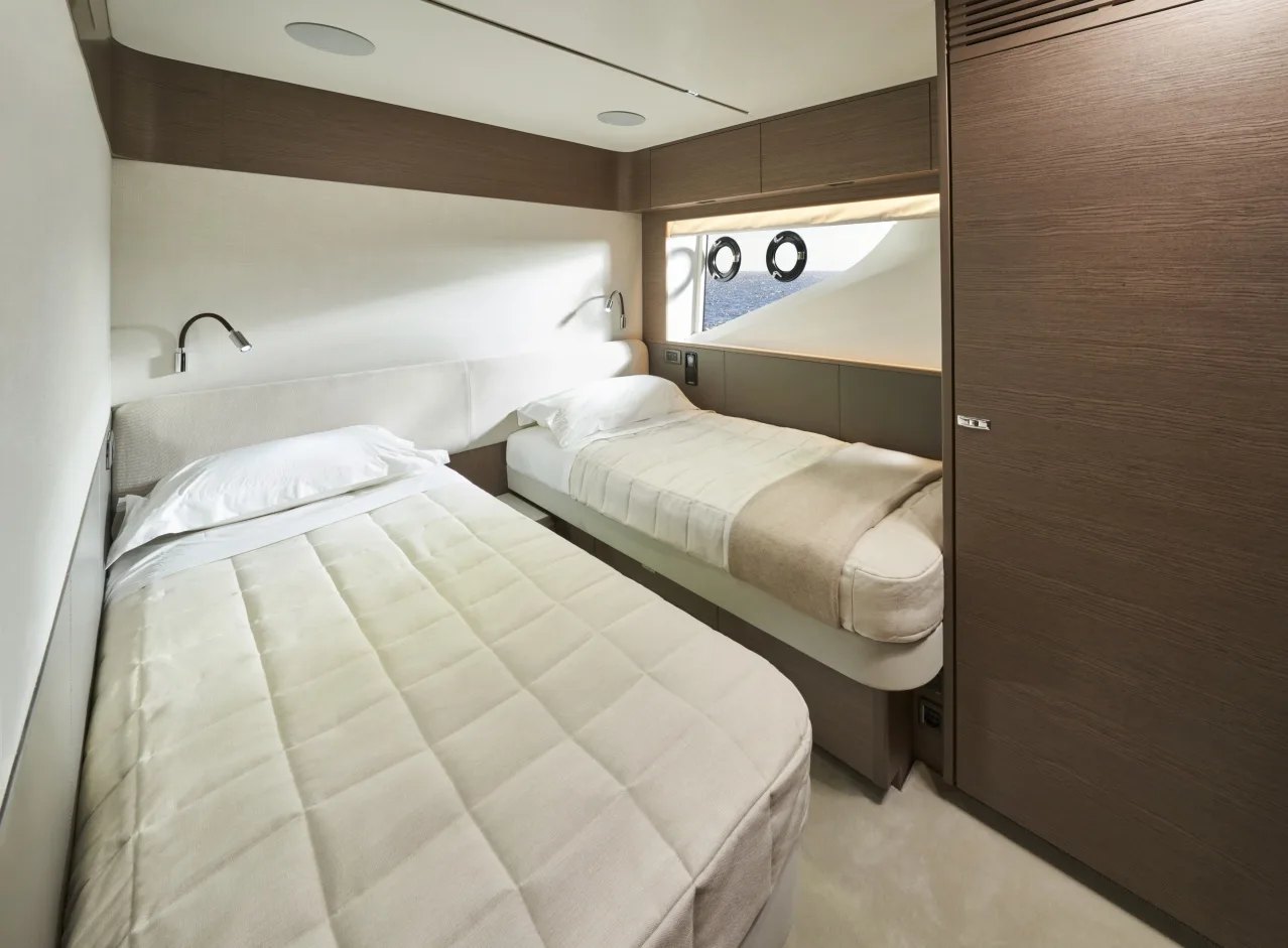 - Port cabin to have double berth conversion with powered sliding mechanism on inboard berth (not available if Pullman berth is specified);