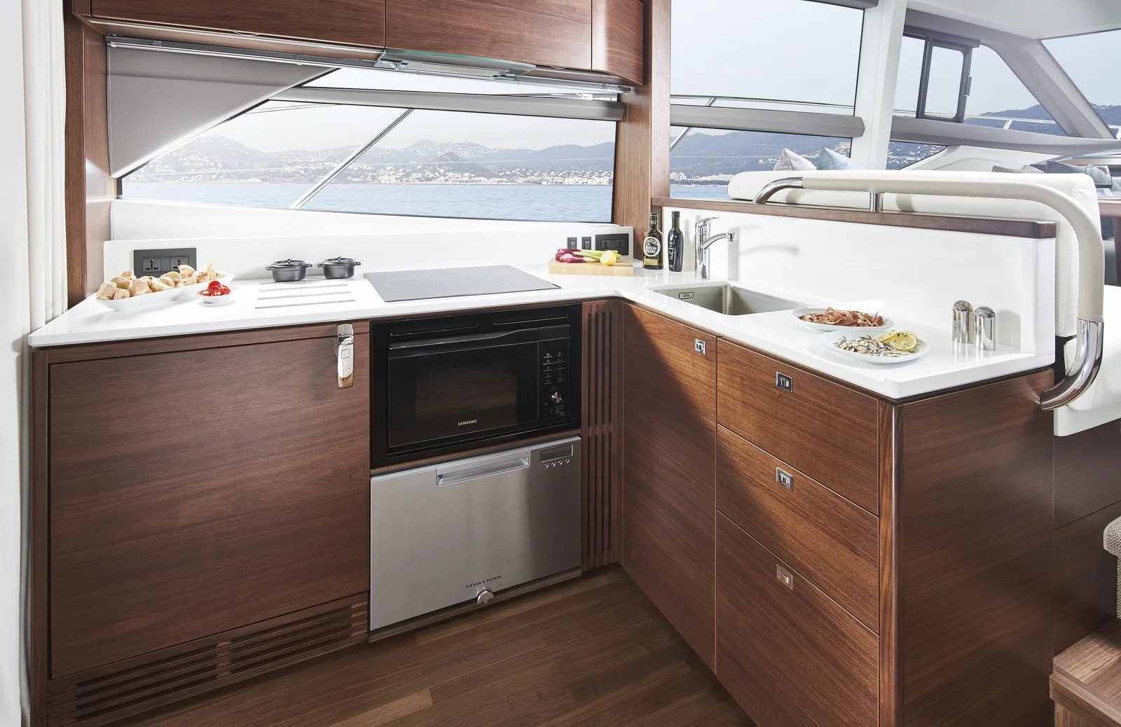 - Solid surface worktops in galley