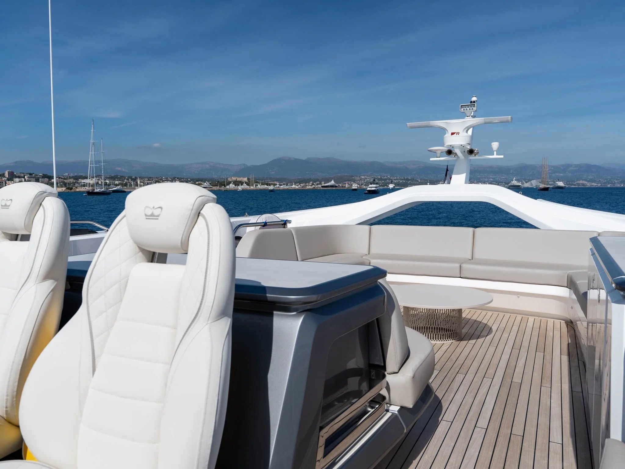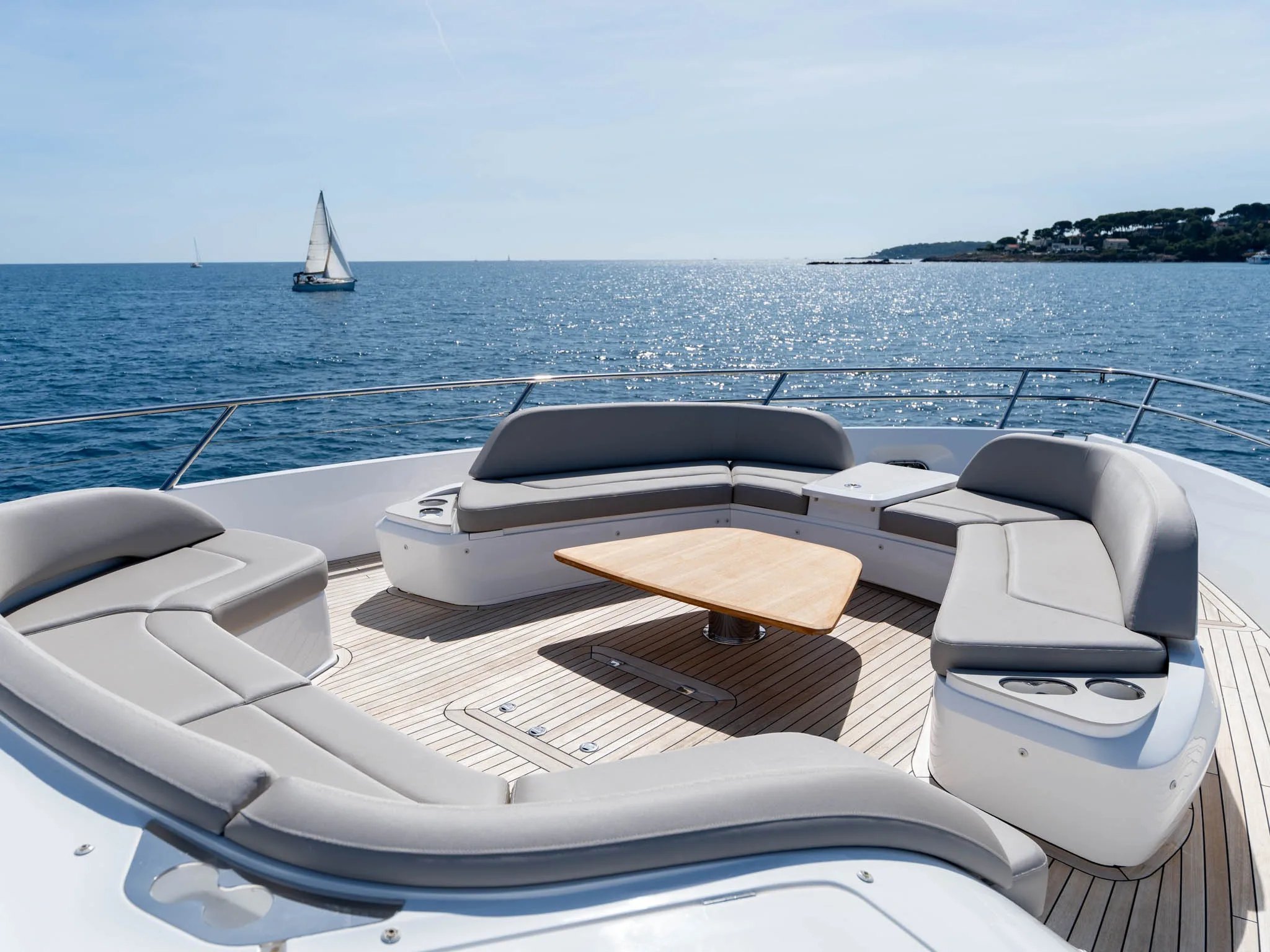 - Additional Power sockets (deck saloon, galley & all cabins, including crew quarters). Qi wireless chargers to sportbridge & main deck foredeck seating;