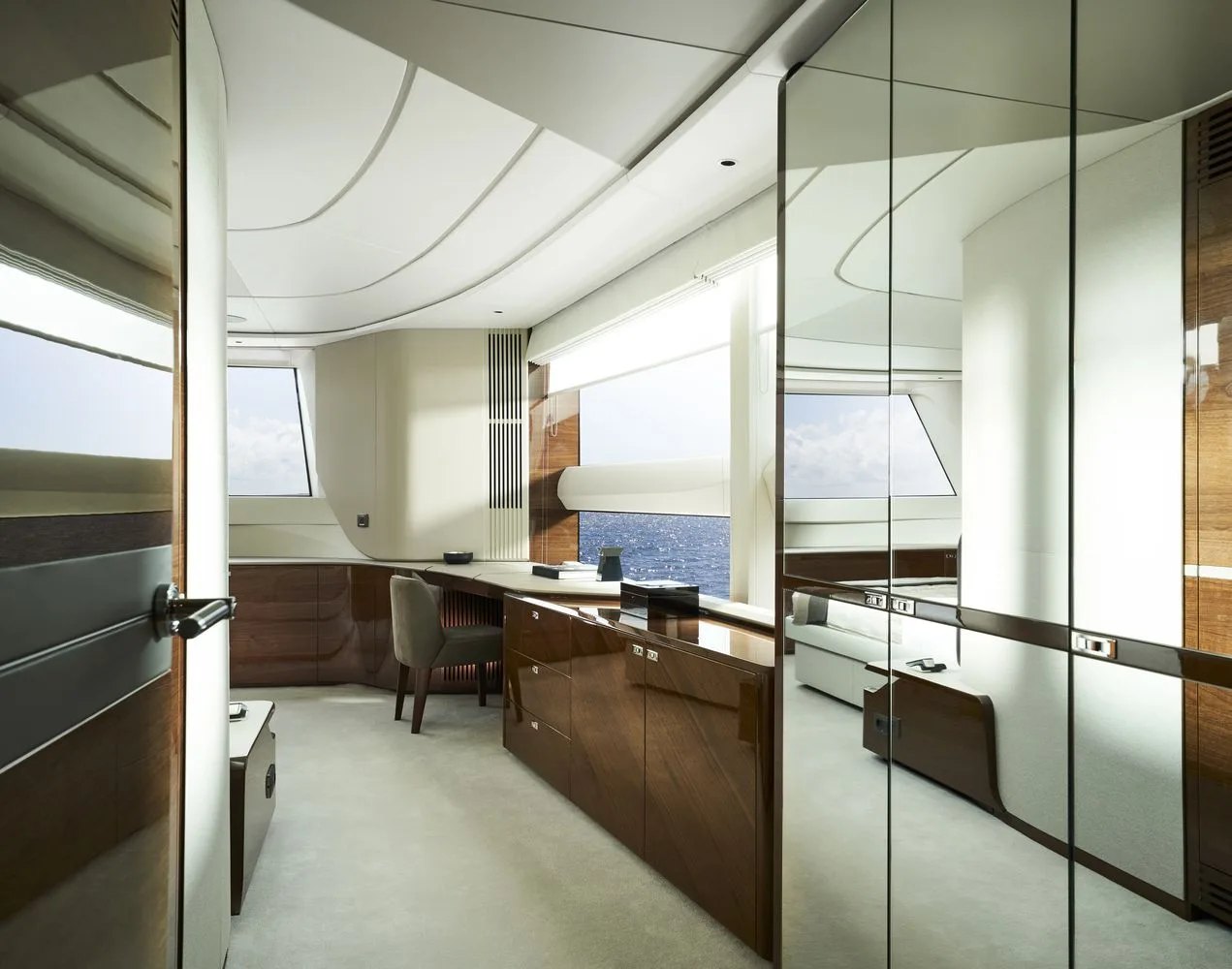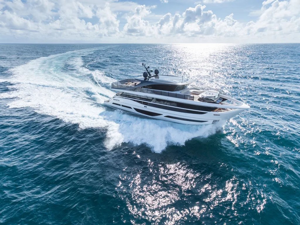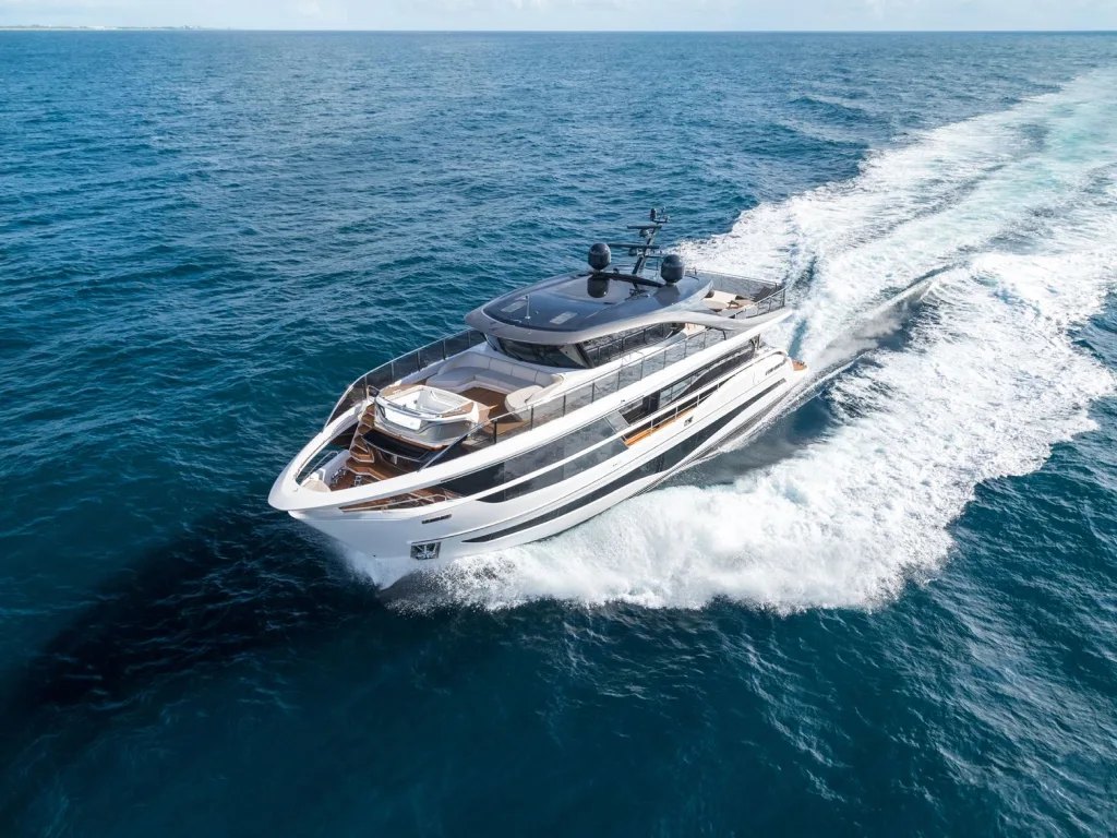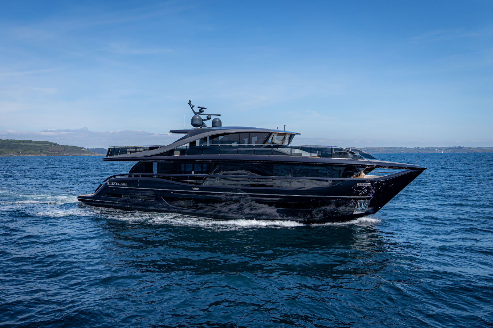 Characterised by beautifully sculpted surfaces and long flowing lines, the X95 defines a striking design language for this new Class. Both her flybridge and main deck cover almost the full length of the yacht, delivering expansive spaces with flexibility that enables you to define each journey around your guests’ preferences. With a fuel capacity of 13,400 litres, the X95 has the range for far-reaching, adventurous voyages. Experience space akin to a megayacht as you enter her main deck saloon and witness a line of sight right through to the forward window. Ascend the internal staircase to the upper deck and another unique experience awaits: a fully enclosed and climatecontrolled Sky Lounge. Taking pride of place on her lower deck is the full beam Master Stateroom with en suite, complemented by her Forward Stateroom with walk-in wardrobe and en suite bathroom. Additional port and starboard guest cabins can each be configured with two single beds or one double bed, whilst generous crew quarters complete her extensive accommodation.