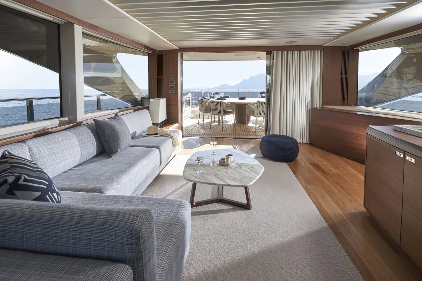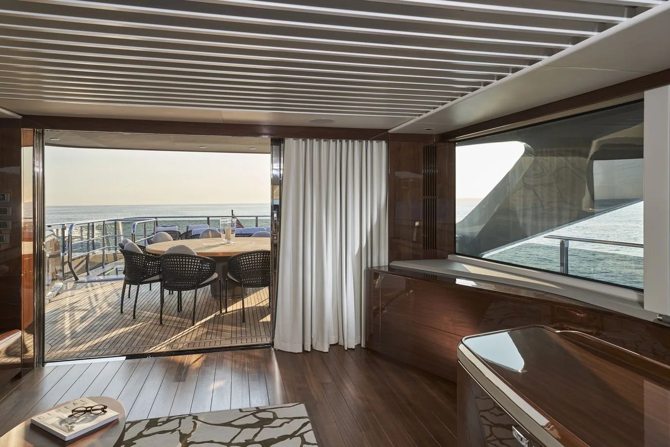 - Transom doors giving direct access to garage with electro-hydraulic door and manual wetbike launch system (3.05m wetbike)