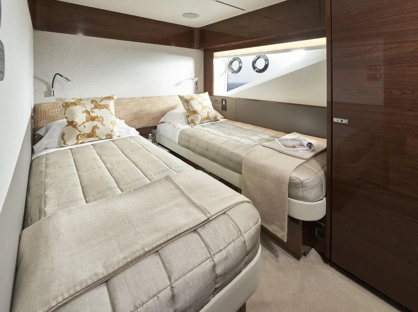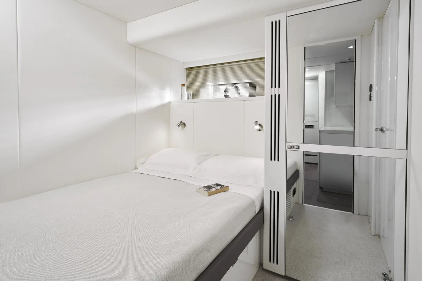 - Crew cabin with two single beds, wardrobe and storage lockers