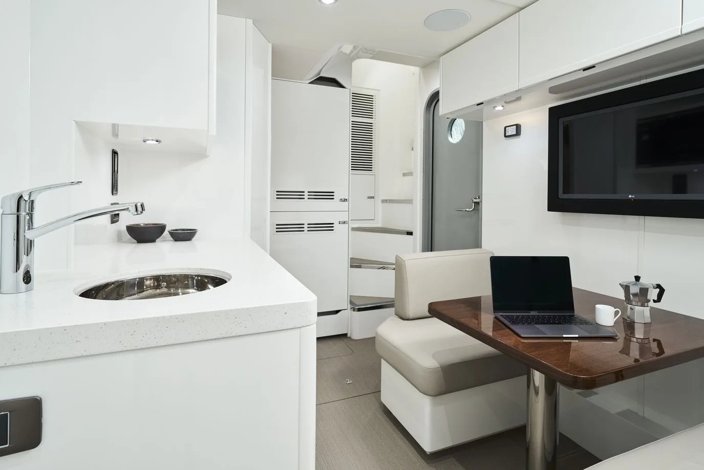 - Crew mess with microwave oven, sink, refrigerator and washing machine with separate dryer