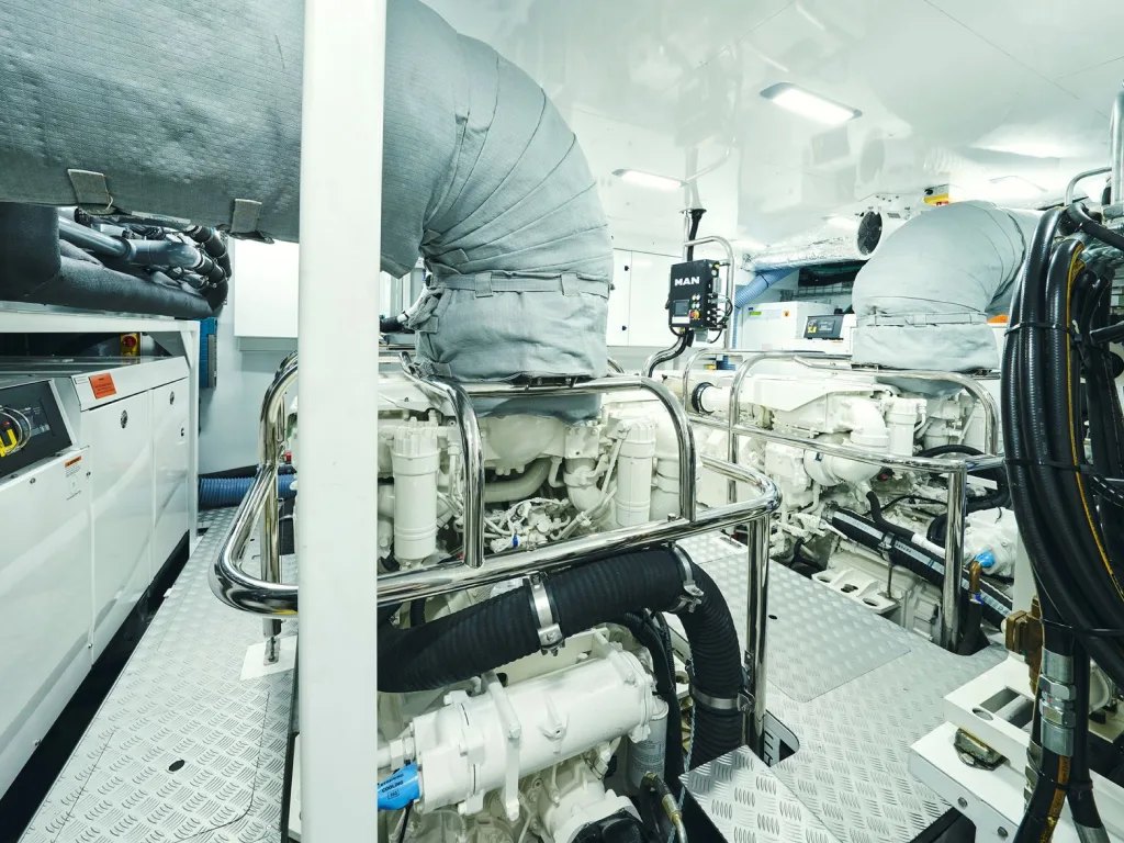 - Hand-operated fire extinguishers in all cabins, galley, crew and flybridge
