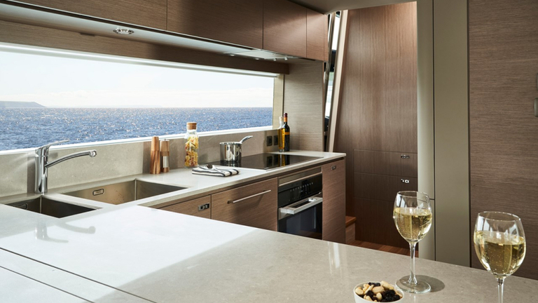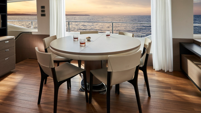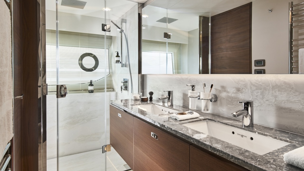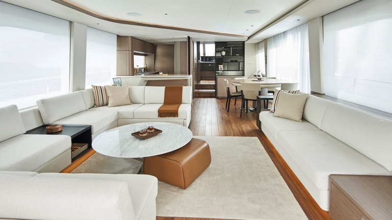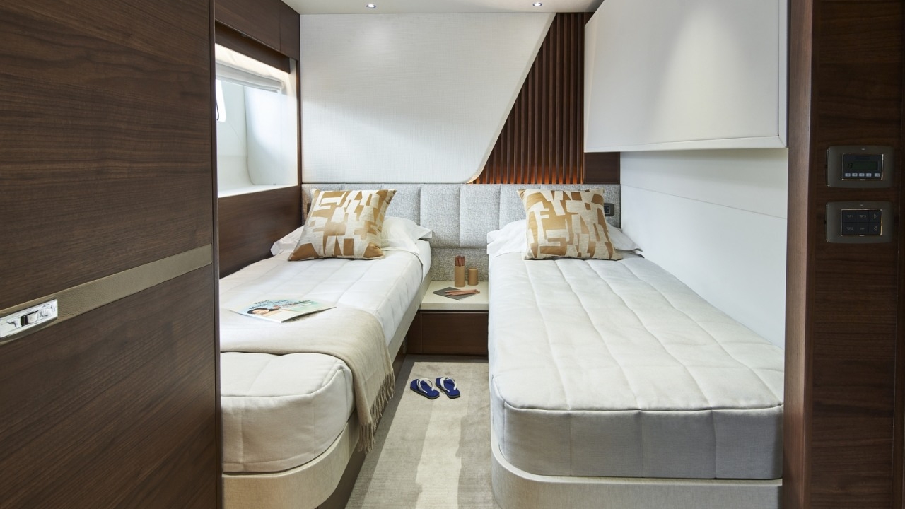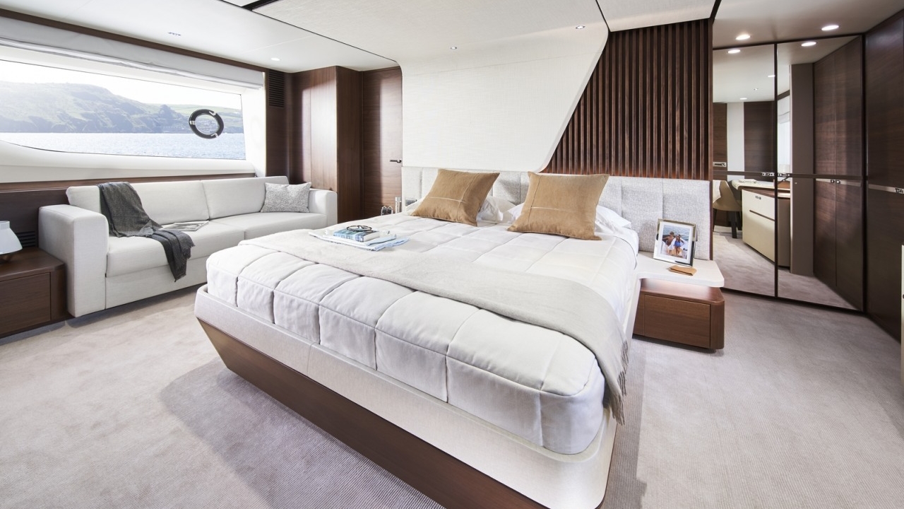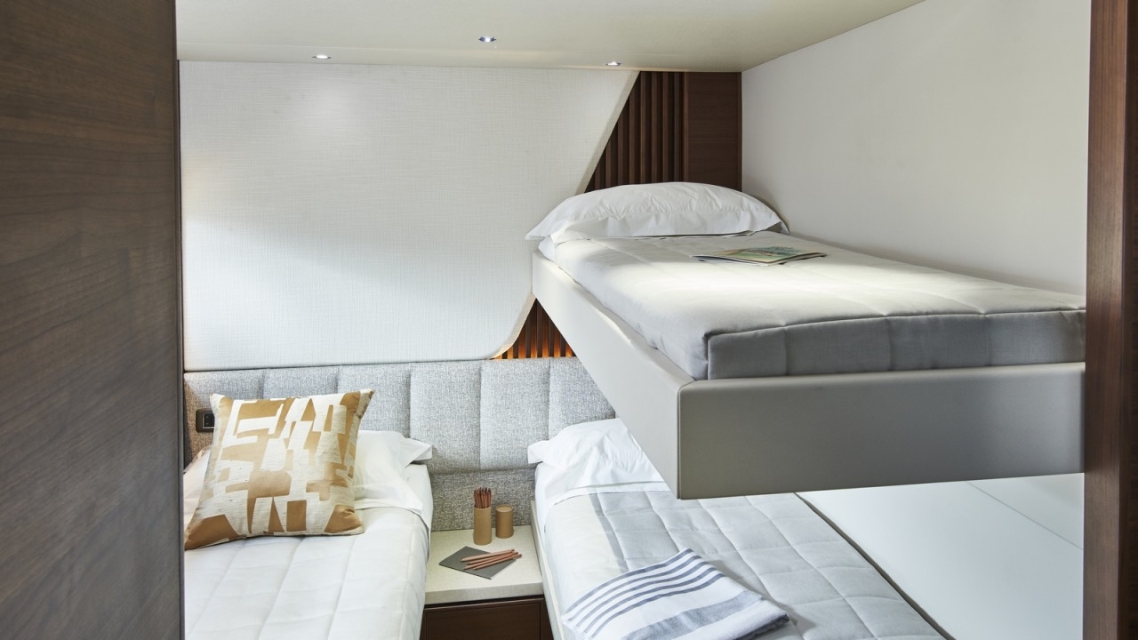 The all-new Y85 is a triumph of contemporary design. Her elegant sweeping profile houses an interior sanctuary that resets the benchmark for modern living. Her flybridge is an irresistible invitation to al fresco entertainment with a large dining area opposite a well-equipped wet bar further complemented by a large aft sunpad. With twin MAN V12 engines propelling her to a top speed of 33 knots, she flies past her contemporaries without looking back. An expansive single-level main deck provides ample entertaining space with a flexible galley arrangement. Three separate seating areas ensure the utmost privacy for guests with the crew able to move discretely around the yacht. Below deck, up to eight guests are accommodated across four beautifully appointed en suite cabins. Amidships, the full beam master suite is a champion of spacial design, whilst the en suite VIP cabin, forward, boasts a large double bed and walk-in-wardrobe. Furthermore, one double and one twin cabin (convertible into a double) complete her spacious accommodation. Unmissable, the all-new Y85 is unmistakably Princess.