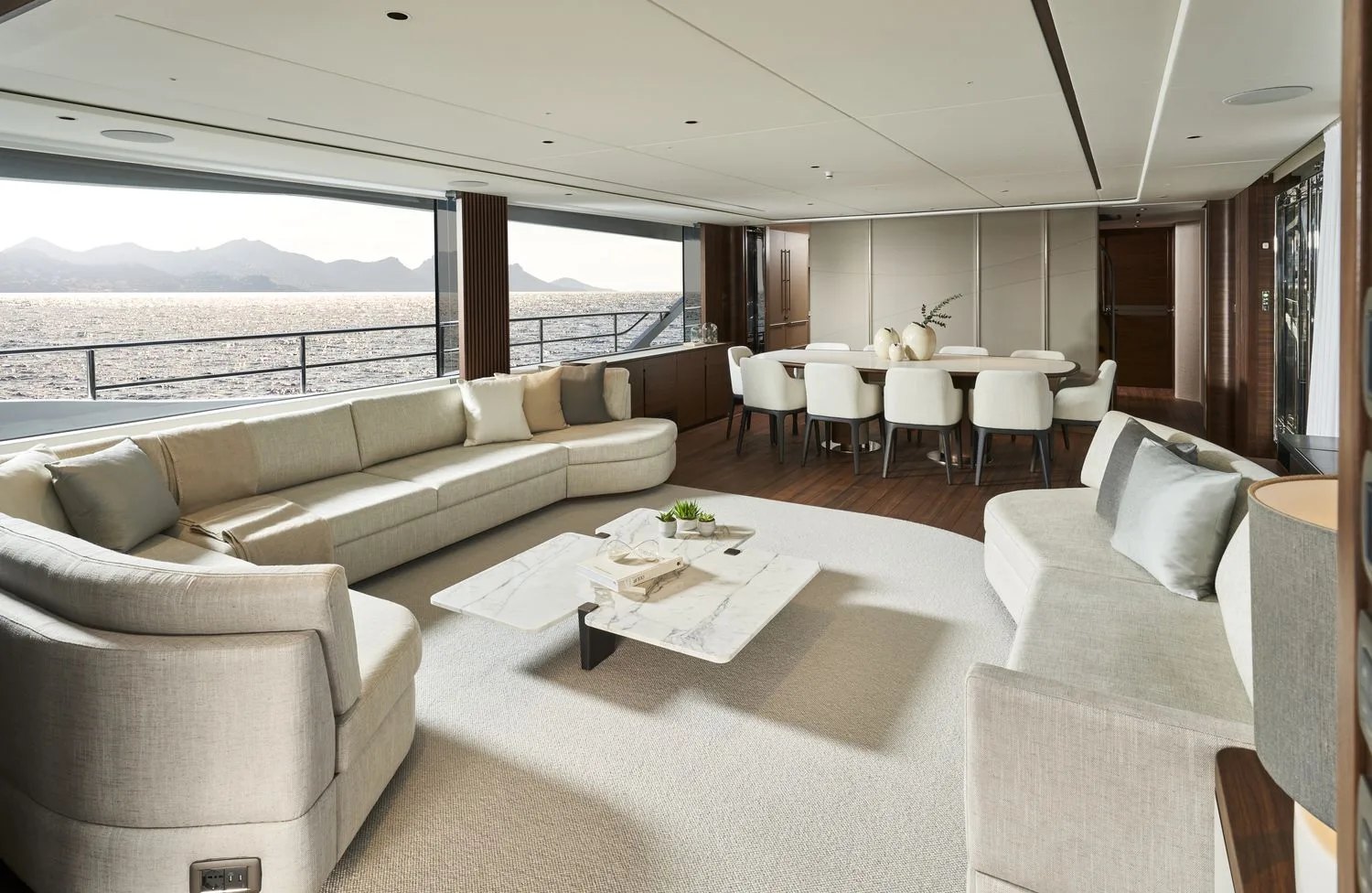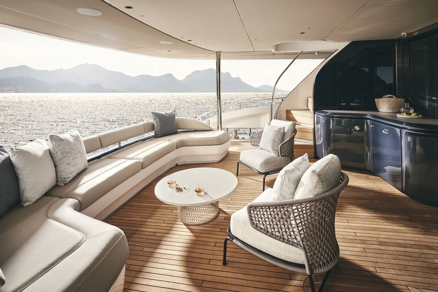 The flagship of our Y Class range – the all-new Y95, has been crafted with an emphasis on performance and inspired styling. With the latest hull form and an efficient wave-piercing bow, she will provide class-leading seakeeping, reaching speeds up to 26 knots. With a spacious garage and transformer bathing platform and the option of a beach club, your maximum enjoyment of time on the water is assured. Her evolved exterior styling features the longest and most expansive hull windows ever installed on a Princess yacht, whilst her spacious indoor and outdoor living spaces are comparable to those of larger craft. Configurable layout options throughout and a new interior design language await, with the guidance of your own Princess Design Consultant to assist with defining your vision. Her main deck features a full beam master stateroom with skylights and is complemented by a further four wellappointed en suite guest cabins. Her generous crew accommodation includes an en suite Captain’s cabin with double bed.