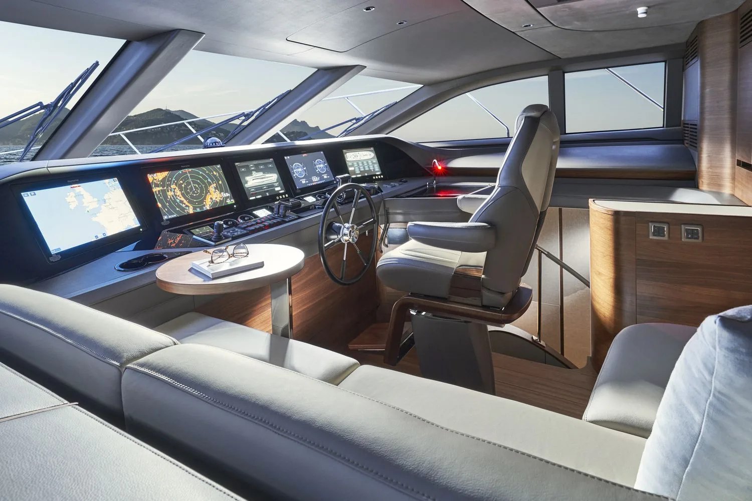 - Helm position with repeat navigation equipment including radar, chartplotter and engine instrumentation