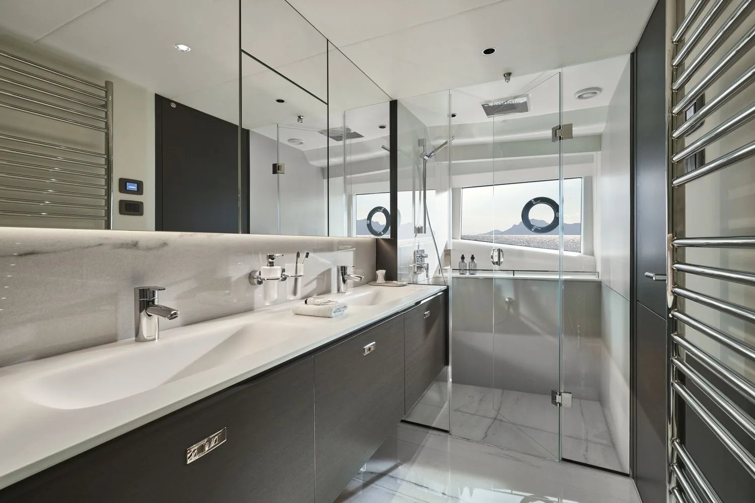 - All bathrooms feature full shower stalls, electric freshwater toilets, extractor fan and 240v shaver points